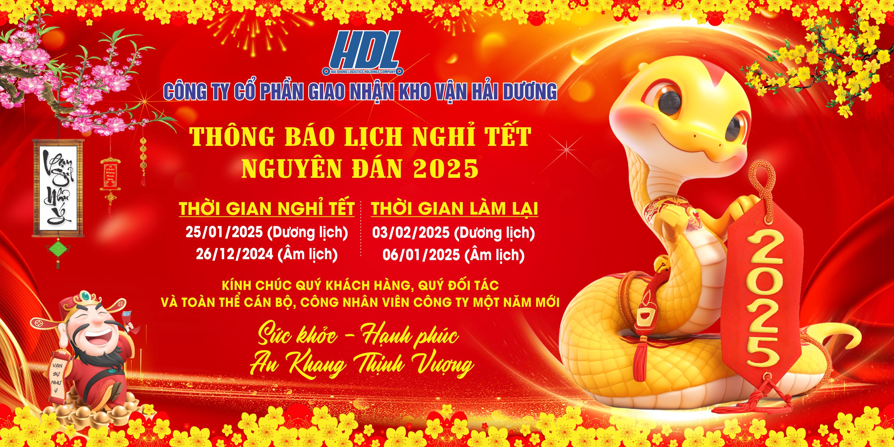 Trang chủ » Tin tức » Văn hóa - Công đoàn » THÔNG BÁO LỊCH NGHỈ TẾT NGUYÊN ĐÁN 2025